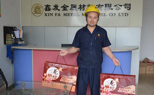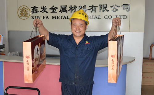 此次送出的禮品一共有11份,分別送給鑫發(fā)金屬的11位優(yōu)秀員工,形式是先在公司里面領(lǐng)取,然后公司再以郵寄的方式送到優(yōu)秀員工的家里,當(dāng)然郵費(fèi)是由公司支付。此舉意義在于激勵(lì)員工向優(yōu)秀員工看齊,在殺雞儆猴上反其道而行之。鑫發(fā)金屬雖然有嚴(yán)格的規(guī)章制度,但是主要的還是這種獎(jiǎng)勵(lì)為主的獎(jiǎng)勵(lì)機(jī)制,用恩百威一的獎(jiǎng)懲結(jié)構(gòu)模式進(jìn)行管理。