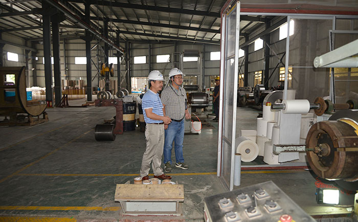 圖三:富士康部長(zhǎng)參觀拉矯機(jī)生產(chǎn)過(guò)程